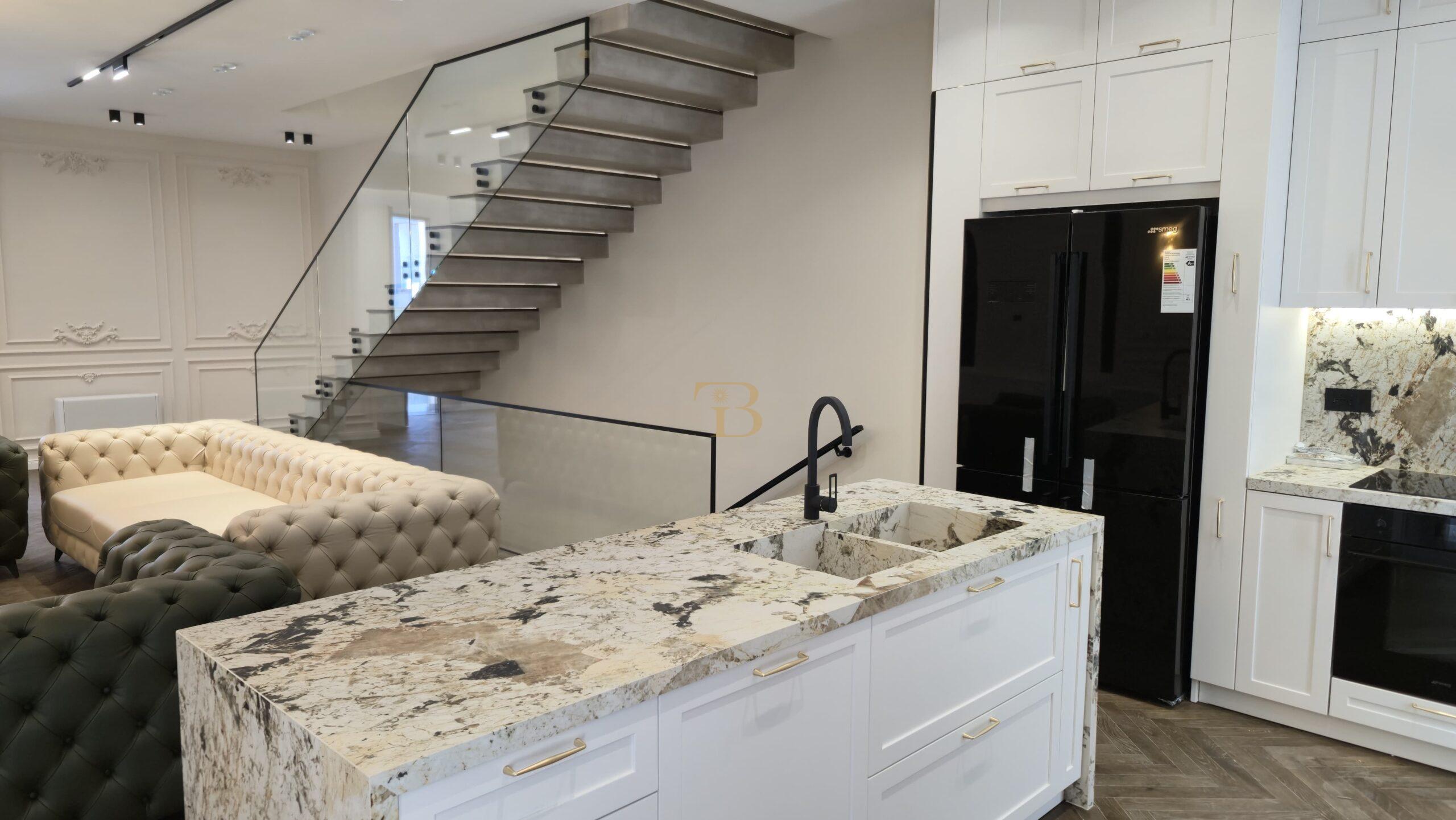 - Kati 1 (124.3 m2): * 3 Dhoma gjumi; *2 tualete; * Garderobe; *Ballkon;