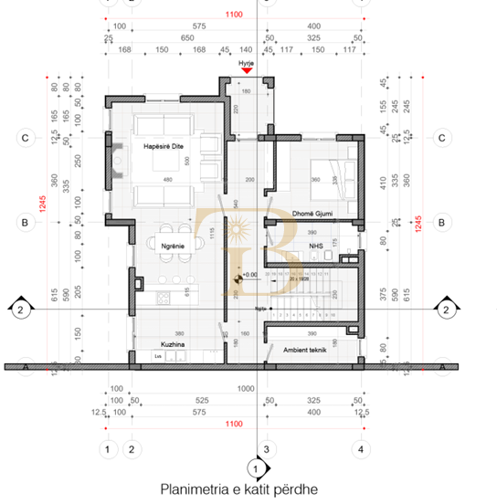 - Kati 0 (117.48 m2) : Ambjent ndenje + Ngrenie + Gatimi, Depo, Tualet.